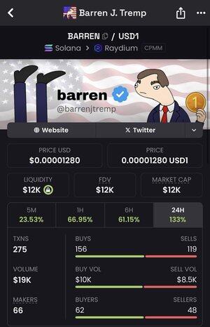 $BARREN tremp no USD1 está em 10k com uma distribuição impecável - ele tem sido um meme viral desde a inauguração, todos sabemos disso, por isso, na minha opinião, está subvalorizado ca