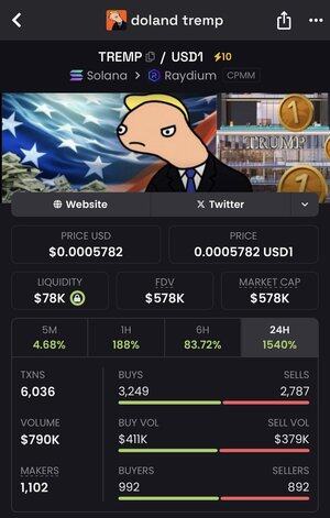 Donald $TREMP no USD1 a correr milhares de x's (até o par USD1 $tremp mais antigo subiu 10x)